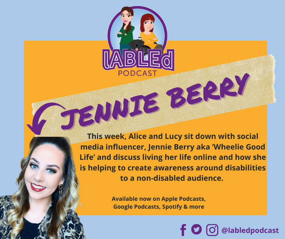This week, Alice and Lucy sit down with social media influencer, Jennie Berry aka ‘Wheelie Good Life’ and discuss living her life online and how she is helping to create awareness around disabilities to a non-disabled audience.